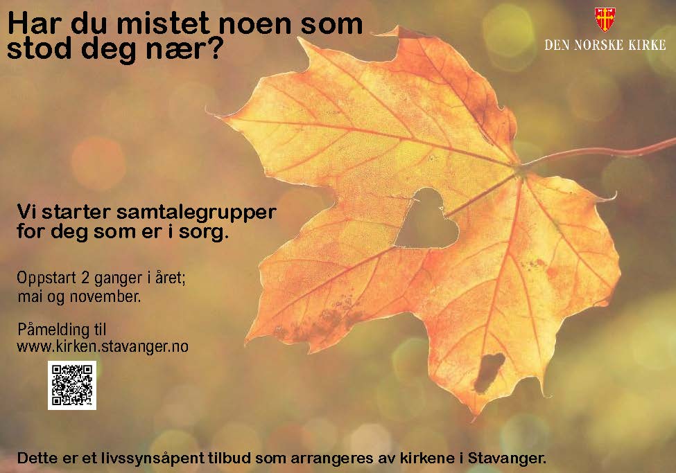 Tiden etter et dødsfallet kan for mange kjennes tung og vanskelig enten døden kom brått eller etter lang tids sykeleie. Mange opplever at andres oppmerksomhet og støtte kan avta etter hvert som tiden går. Da kan det være godt å møte andre i samme situasjon. Menighetene i Stavanger samarbeider om sorggrupper der sørgende kan dele tanker, følelser og erfaringer med hverandre. Det er opp til hver enkelt hva og hvor mye en vil si, men ved å dele noen erfaringer med hverandre, kan en gi hverandre gjensidig støtte.